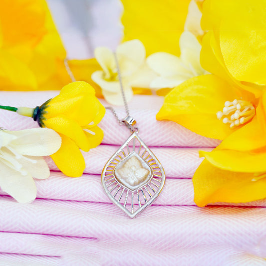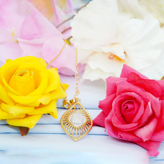 Vertical Eye with 3-Leaf Designing Pearl Pendant with Chain