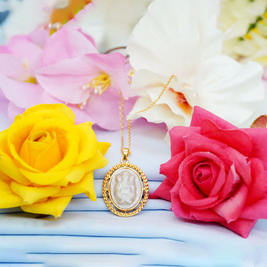 Golden Radha-Krishna Designing Pearl Pendant with Chain