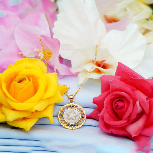 Designing Wheel Shaped Star Pearl Pendant with Chain
